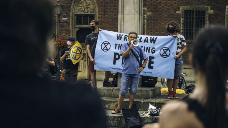 Mieszkańcy Wrocławia, lokalni liderzy walczący o ochronę przyrody oraz aktywiści Extinction Rebellion spotykali się we wtorek 28-go lipca o 17.00 pod wrocławskim Pręgierzem, aby zaprotestować przeciwko bierności władz miasta wobec niszczenia przyrody i kryzysu klimatycznego.