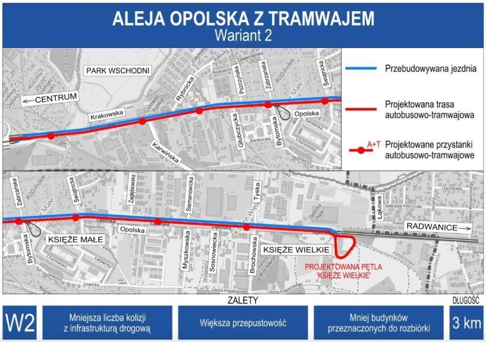 Rozpoczęły się konsultacje społeczne dotyczące przebudowy ulicy Opolskiej, Krakowskiej i budowy trasy tramwajowej na Księże Wielkie do granicy miasta. Mieszkańcy mogą wypowiedzieć w sprawie do dwóch wariantów trasy.