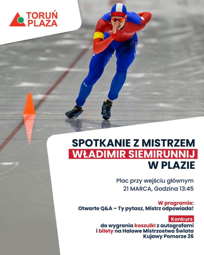 Kilka tygodni temu zdobył dla Polski srebrny medal igrzysk olimpijskich w Mediolanie, a w sobotę spotka się z kibicami w Toruniu. Władymir Semirunnij, znakomity polski łyżwiarz szybki przyjedzie na Halowe Mistrzostwa Świata Kujawy Pomorze 26, by kibicować polskim zawodnikom, spotkać się z kibicami i obejrzeć niezwykłą wystawę zdjęć z ostatnich igrzysk olimpijskich.