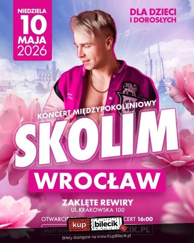 Zapraszamy na wyjątkowy Koncert Międzypokoleniowy Skolima, który połączy pokolenia i dostarczy mnóstwo pozytywnej energii zarówno dzieciom, młodzieży, jak i dorosłym. Skolim to jeden z najpopularniejszych artystów młodego pokolenia, znany z energetycznych hitów, chwytliwych melodii i doskonałego kontaktu z publicznością. Jego koncerty to gwarancja świetnej zabawy, wspólnego śpiewania i niezapomnianej atmosfery. To wydarzenie stworzone z myślą o rodzinach, fanach dobrej muzyki i wszystkich, którzy chcą spędzić niedzielne popołudnie w wyjątkowym muzycznym klimacie.