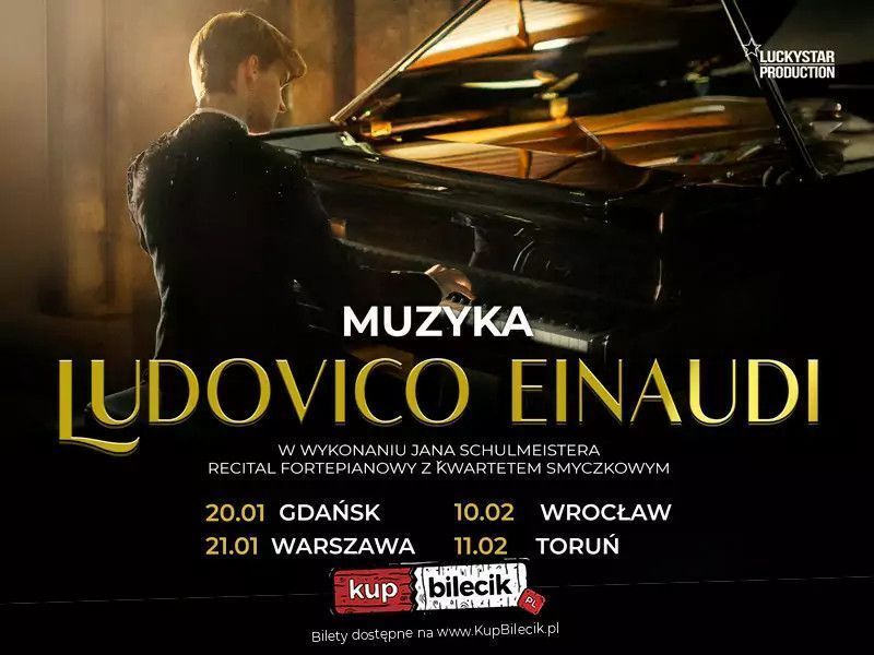 Zapraszamy na koncert muzyki światowej sławy kompozytora Ludovica Einaudiego w wykonaniu wybitnego czeskiego pianisty Jana Schulmeistera z towarzyszeniem kwartetu smyczkowego. Bilety do nabycia na: KupBilecik.pl