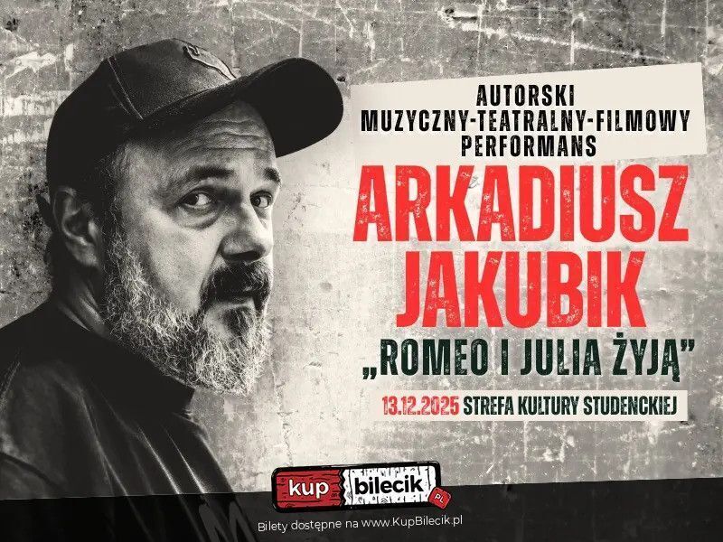 13 grudnia w Strefie Kultury Studenckiej we Wrocławiu wystąpi Arkadiusz Jakubik z wyjątkowym projektem "Romeo i Julia żyją" - autorskim, muzyczno-teatralno-filmowym performansem, który wymyka się klasyfikacjom i działa na wszystkie zmysły.
