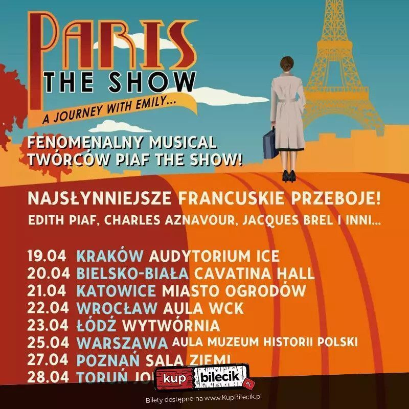 Paris! The Show - The Greatest French Songs - Fenomenalny musical autorów Piaf! The Show. Największe francuskie przeboje: Edith Piaf, Charles Aznavour, Jacques Brel, Maurice Chevalier, Josephine Baker, Yves Montand.