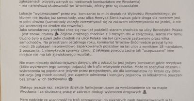 Mieszkaniec Wrocławia podziękował funkcjonariuszom Komisariatu Policji Wrocław Śródmieście za skuteczne działania wobec nieprawidłowo parkujących...