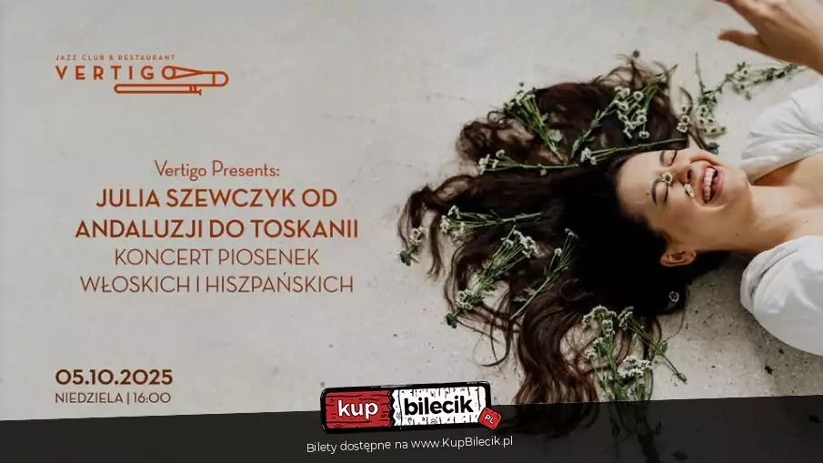 | Vertigo Presents: Julia Szewczyk Od Andaluzji do Toskanii - Koncert Piosenek Włoskich i Hiszpańskichdodano 2025-09-25 19:14:54 rozpoczęcie: