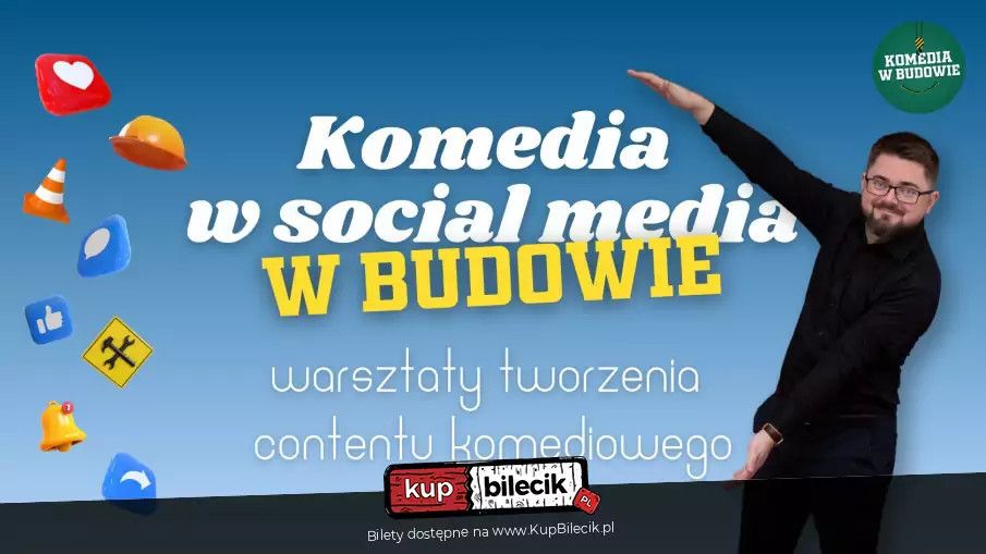 bilety: Prowadzisz swoje social media i z zazdrością patrzysz na inne konta, które w sposób śmieszkowy tworzą swoje treści lub wykorzystują aktualne trendy? Masz mnóstwo pomysłów do Twojej branży, które mógłbyś w podobny sposób przedstawić, ale nie wiesz jak? Lub chciałbyś nauczyć się jak wymyślać takie pomysły? Tak czy inaczej trzeba się wreszcie do tego zabrać! "Komedia w social mediach - w budowie" to warsztaty komediowe skierowane do osób, które chcą poszerzyć własne umiejętności w social mediach o elementy komediowe, które przyciągną do swojej branży inną grupę klientów. Warsztaty opierają się przede wszystkim na przedstawieniu narzędzi i technik wykorzystywanych w pisaniu materiału komediowego, aby móc użyć go w przygotowaniu treści do social mediów takich jak, rolki, reelsy, story, memy etc. To nie szkolenie czy wykład, ale prawdziwy warsztat - opierający się na doświadczeniu prowadzących i kreatywności uczestników. Komedia w social mediach - w budowie artyści: Warsztaty tworzenia contentu komediowegoWarsztaty opierają się przede wszystkim na przedstawieniu narzędzi i technik wykorzystywanych w pisaniu materiału komediowego, aby móc użyć go w przygotowaniu treści do social mediów takich jak, rolki, reelsy, story, memy etc. To nie szkolenie czy wykład, ale prawdziwy warsztat - opierający się na doświadczeniu prowadzących i kreatywności uczestników. Bilety do nabycia na: KupBilecik.pl |