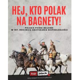 bilety: HEJ, KTO POLAK NA BAGNETY! - Polskie pieśni bojowe w 107. rocznicę Odzyskania Niepodległości Aby ułatwić wspólne śpiewanie przygotowane będą okolicznościowe śpiewniki z tekstami piosenek. "Warszawianka", Jak to na wojence ładnie", "Przybyli Ułani Pod Okienko", "Szara Piechota", "Hej, Hej Ułani", "O Mój Rozmarynie", "My, Pierwsza Brygada", "Kadrówka", "Więc Pijmy Wino, Szwoleżerowie", "Serce w Plecaku", "Pałacyk Michla", "Warszawskie Dzieci", "Czerwone Maki Na Monte Cassino" i wiele innych pięknych polskich pieśni zaśpiewamy razem w Starym Klasztorze. Większość z nich znacie Państwo doskonale, a we wspólnym śpiewaniu pomogą nasi muzycy. Patriotyczny, ale i radosny wieczór poprowadzą wrocławscy wokaliści, którym akompaniować będzie zespół znakomitych muzyków związanych ze Starym Klasztorem. Uczestnicy poprzednich edycji wspólnego śpiewania w Starym Klasztorze, wiedzą już, że ten skład artystów gwarantuje niezapomnianą atmosferę patriotycznego wieczoru z piosenką. Hej, kto Polak na bagnety! artyści: Polskie pieśni bojowe w 107. rocznicę Odzyskania Niepodległości"Hej, kto Polak na bagnety! Żyj, swobodo, Polsko, żyj! " - ten refren słynnej "Warszawianki" zaśpiewamy razem już 11 listopada w Starym Klasztorze. W 107 rocznicę Odzyskania Niepodległości zapraszamy na koncert i wspólne śpiewanie najpiękniejszych pieśni z polskiej historii - od Powstania Listopadowego przez Powstanie Styczniowe, I wojnę światową i Legiony Piłsudskiego oraz wojnę polsko bolszewicką, aż do II wojny światowej i Powstania Warszawskiego. Bilety do nabycia na: KupBilecik.pl |