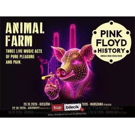 bilety: Pink Floyd History ,,Animal Farm Three Live Music Acts Of Pure Pleasure And Pain - World Tour 2026-2028" Na scenie wystąpią wyjątkowi muzycy, którzy dzięki swojej pasji i talentowi ożywią nieśmiertelne piosenki Pink Floyd z nienaganną wiernością i potężną energią, tworząc dla Was niezapomniane przeżycie. Zapraszamy na koncerty! Bilety do nabycia na: KupBilecik.plPink Floyd History artyści: Pink Floyd HistoryKoncert Pink Floyd History odtwarza muzyczną drogę legendarnego zespołu: od psychodelicznych brzmień z początków kariery aż po utwory z nurtu rocka progresywnego. Dźwiękom nieodłącznie towarzyszy niesamowita oprawa wizualna, potęgująca wyjątkową atmosferę muzyki Pink Floydów. Składają się na nią porywająca gra świateł, hipnotyzujące projekcje i mapping, a całość ilustruje artystyczne idee, jakie przyświecały różnym etapom twórczości zespołu. Pink Floyd History, okrzyknięty jednym z najlepszych tribute bandów, już niebawem po raz pierwszy zagości w Polsce, prezentując pełne emocji wydarzenie, które z pewnością nie tylko warto zobaczyć i usłyszeć, ale którego też przede wszystkim warto doświadczyć. Bilety do nabycia na: KupBilecik.pl |