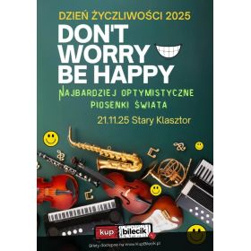 | DON'T WORRY BE HAPPY - najbardziej optymistyczne piosenki światadodano 2025-10-20 19:13:58 Dzień Życzliwości 2025: DON"T WORRY BE HAPPY - najbardziej optymistyczne piosenki świata w Starym Klasztorze!