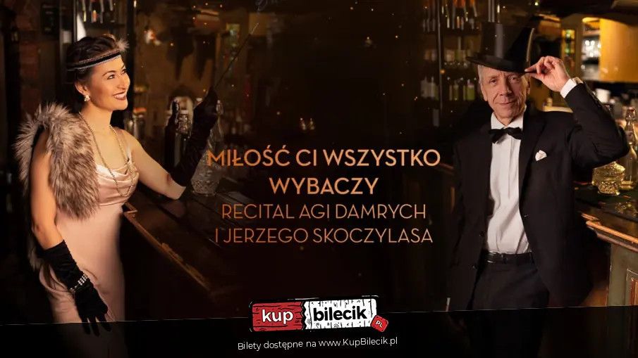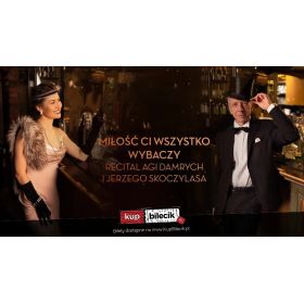 bilety: Barwna podróż po świecie kabaretu - Ten spektakl to barwna i dowcipna opowieść muzyczna o pannie Agnieszce. Akcja dzieje się w przedwojennej Polsce, w czasie międzywojennego dwudziestolecia, złotego okresu polskiego kabaretu. Wtedy tworzyli tacy twórcy jak Tuwim, Hemar czy Wars, a sceną rządziły gwiazdy: Ordonówna, Pogorzelska i Bodo. To właśnie ich dorobek stanowi skarbiec wielkich, ponadczasowych przebojów, z którego Agnieszka czerpie garściami, przeistaczając się z nieśmiałego podlotka w dojrzałą, pełną czaru kobietę. Trasa i zmieniające się oblicze bohaterki - Widać to nie tylko po repertuarze, który zmienia się wraz z jej rozwojem, ale także po strojach bohaterki, które zmienia tak często jak swoich adoratorów. W trakcie spektaklu odwiedzimy przedwojenny Lwów, Kraków i Warszawę, zahaczając m.in. o słynną stołeczną Adrię. Obsada i największe przeboje - Kabaretową historię snuje na scenie Jerzy Skoczylas, a w postać Agnieszki wciela się znakomita Aga Damrych. Towarzyszy jej równie utalentowany pianista. W repertuarze usłyszymy hity takie jak: Przy takich przebojach publiczność aktywnie włącza się w śpiewanie razem z solistką, co gwarantuje doskonałą, pełną emocji i nietuzinkową zabawę. * Bilet nie jest gwarancją miejsca siedzącego. Bilety do nabycia na: KupBilecik.plMiłość Ci wszystko wybaczy - recital artyści: Aga Damrych, Jerzy SkoczylasPrzed Nami wyjątkowi wrocławscy artyści, piękne opowieści i muzyka czyli Aga Damrych & Jerzy Skoczylas. Ten wyjątkowy spektakl to barwna i dowcipna opowieść muzyczna o Pannie Agnieszce. Scena przepełniona jest autentycznością, kolorowymi strojami, ciekawą scenografią, ale przede wszystkim doskonałą muzyką i żartem. Nawiązują one nie tylko do rozterek miłosnych, ale i zawiłej codzienności głównej bohaterki, o czym opowiadają, grają i śpiewają tworzący ten spektakl artyści. Okres międzywojenny w polskiej kulturze to wspaniały czas dla polskiego kabaretu, w którym działali tacy Twórcy jak Tuwim, Hemar czy Wars, a sceny rozbrzmiewały głosami wybitnych gwiazd, a byli to m.in. Hanka Ordonówna, Zula Pogorzelska, Eugeniusz Bodo. Stworzyli oni wspólnie prawdziwy skarbiec wielkich, ponadczasowych przebojów. Agnieszka z tego właśnie czasu czerpie garściami wszystko to, co niepowtarzalne, wyjątkowe i na Naszych oczach z nieśmiałego podlotka powoli przeistacza się w dojrzałą Kobietę. Odbędziemy z nią podróż od przedwojennego Lwowa przez Kraków po Warszawę, zahaczymy o słynną stołeczną Adrię... A gdzie wylądujemy Tego zdradzić nie możemy! To trzeba zobaczyć. Bilety do nabycia na: KupBilecik.pl |