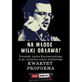 | Piosenki Jacka Kaczmarskiego w 44. rocznicę stanu wojennego gra KWARTET PROFORMAdodano 2025-11-07 11:14:34 14 grudnia zapraszamy do Starego Klasztoru na specjalny koncert Wrocławskiego Salonu Jacka Kaczmarskiego. Na początku lat 80", w czasie "karnawału Solidarności" i stanu wojennego, nie było w naszym kraju spotkania towarzyskiego, turystycznego rajdu w góry czy ogniska bez wspólnego śpiewania pieśni Jacka Kaczmarskiego. Podczas koncertu usłyszymy legendarne już "Mury", "Obławę" "Arkę Noego" i "Modlitwę o wschodzie słońca", a także wiele innych piosenek Jacka. Nie zabraknie okazji do wspomnień i wspólnego śpiewania. Gospodarzem wieczoru w Starym Klasztorze będzie KWARTET PROFORMA - od lat propagujący twórczość tria Kaczmarski - Gintrowski - Łapiński, znany szerszej publiczności ze wspólnych koncertów z Kazikiem Staszewskim. Cechą charakterystyczną Kwartetu są bogate aranżacje i rozpoznawalne brzmienie, w którym dużą rolę oprócz instrumentarium podstawowego grają również kontrabas, akordeon, mandolina i różne instrumenty perkusyjne. Podczas swojej już ponad 23-letniej działalności Kwartet ProForma zagrał ponad 1000 koncertów w całej Polsce oraz za granicą. Uwaga! Na młode wilki obława artyści: Różni artyści.Na początku lat 80", w czasie "karnawału Solidarności" i stanu wojennego, nie było w naszym kraju spotkania towarzyskiego, turystycznego rajdu w góry czy ogniska bez wspólnego śpiewania pieśni Jacka Kaczmarskiego. Podczas koncertu usłyszymy legendarne już "Mury", "Obławę" i jej następne dwie części, "Arkę Noego" i "Modlitwę o wschodzie słońca", a także piosenki ze stanu wojennego napisane przez Jacka już na emigracji, a znane w Polsce z audycji Radia Wolna Europa, takie jak: "Zbroja", "Marsz intelektualistów", "Koncert fortepianowy", "Przejście Polaków przez Morze Czerwone", "Wróżba", "Nasza klasa" i wiele innych. Nie zabraknie okazji do wspomnień i wspólnego śpiewania. Bilety do nabycia na: KupBilecik.pl |