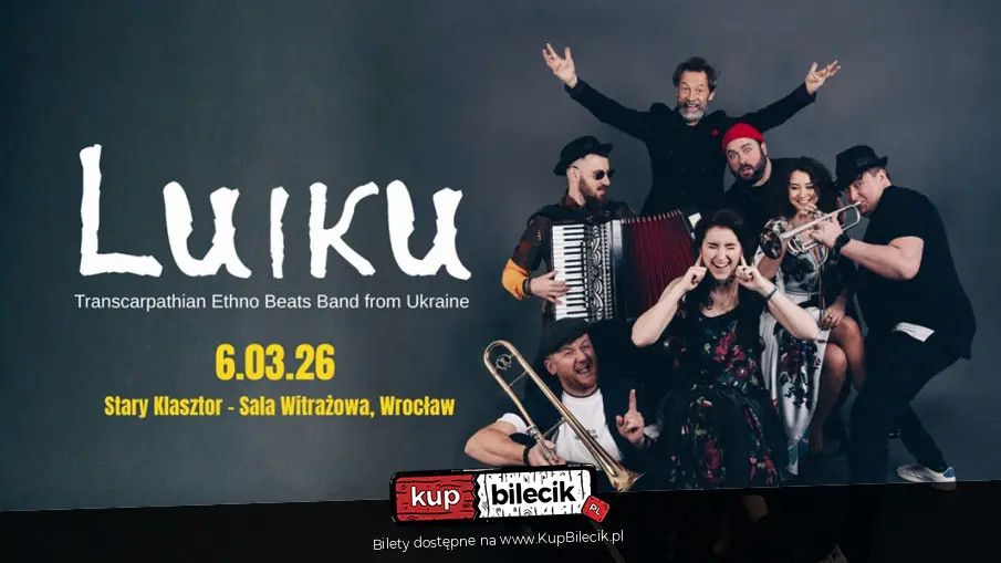 bilety: Ethno Jazz Festival zaprasza 6 marca do Starego Klasztoru na koncert zespołu Luiku, łączącego w mistrzowski sposób ukraińskie, bałkańskie, tureckie, polskie, rumuńskie i węgierskie tradycje muzyczne. Luiku to porywający zespół world beats z Kijowa w Ukrainie. Ich pełna pasji muzyka wykonywana jest z wykorzystaniem elektroniki i żywych perkusji, potężnej sekcji dętej, kobiecych wokali, akordeonu i wielu innych instrumentów. Liderem grupy jest znany ukraiński muzyk i producent - Dmytro Tsyperdyuk. Luiku początkowo powstało jako projekt ścieżki dźwiękowej do filmu dokumentalnego, a następnie przekształciło się w pełny program koncertowy. Nazwa projektu "Luiku" to połączenie postaci Loiku Zabary z kultowego filmu "Tabor ukhodit v nebo" ("Cygański tabor odchodzi w niebo") oraz zachodnioukraińskiego słowa na wujka - "vuiko". Wykorzystanie licznych i różnorodnych motywów etnicznych w muzyce Luiku jest wynikiem wieloletniej, głębokiej pasji Dmytra do muzyki świata. Podczas swoich długich podróży po regionach Zakarpacia chłonął i zbierał unikatowe lokalne materiały muzyczne, a także uczył się gry na autentycznych instrumentach. W efekcie muzyka Luiku to wielobarwna mieszanka wielu tradycji etnicznych z regionu Karpat: ukraińskiej, romskiej, tureckiej, polskiej, węgierskiej, rumuńskiej oraz kilku kultur bałkańskich. Te pełne energii melodie z pewnością porwą Cię do tańca! Uwaga! Luiku artyści: LuikuUkraiński projekt Luiku to nic innego, jak gorący taniec w stylu world music przy akompaniamencie "żywych" instrumentów. Propozycja formacji stanowi mix kilku kultur muzycznych regionu Zakarpacia: ukraińskiej, tureckiej, polskiej, węgierskiej, rumuńskiej oraz bałkańskiej. Wielobarwna muzyka rozprasza codzienne troski, pozwala zapomnieć się w tańcu. Bilety do nabycia na: KupBilecik.pl |