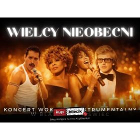 Wielcy nieobecni to pełna emocji muzyczna podróż przez utwory legendarnych wykonawców polskiej i światowej sceny. To spotkanie z głosami, które zapisały się w historii - od Zbigniewa Wodeckiego, Andrzeja Zauchy i Stanisława Soyki, przez Ninę Simone, Arethę Franklin i George"a Michaela, aż po Johna Lennona, Michaela Jacksona i zespół Queen. Każdy z tych artystów pozostawił po sobie nie tylko niezapomniane piosenki, ale także wyjątkową wrażliwość i emocje, które do dziś rezonują z publicznością.