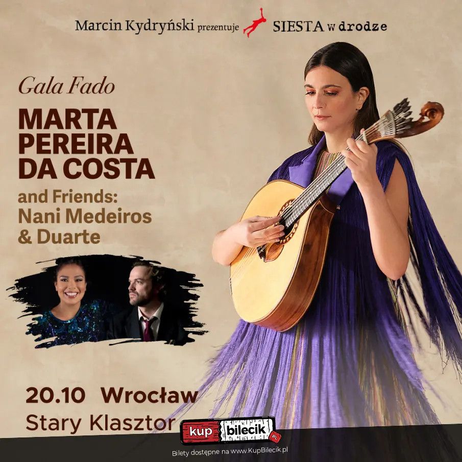 | GALA FADO. Marta Pereira da Costa and Friends: Nani Medeiros & Duartedodano 2026-03-17 19:16:09 SIESTA w drodze: GALA FADO. Marta Pereira da Costa and Friends: Nani Medeiros & Duarte Przed nami Gala Fado! Trzy wielkie postacie w jednym projekcie. Przewodzi mu wirtuozka gitary portugalskiej Marta Pereira da Costa. Rzuciwszy wyzwanie światu od zawsze zdominowanemu przez mężczyzn, Marta - laureatka Fundacji Amalii Rodrigues - olśniewa swą sztuką glob cały, od Brazylii po Senegal; od Stanów Zjednoczonych po Tunezję. Na jej autorskiej płycie pojawiają się najznakomitsze głosy epoki: Camane i Dulce Pontes, ale też nasz dobry siestowy znajomy, genialny Richard Bona. W jesiennej polskiej trasie towarzyszyć będzie Marcie dwoje znakomitych artystów: Brazylijka Nani Medeiros, która w naturalny sposób splata tradycję starej Alfamy z pulsem tropikalnej plaży. I kapitalny Duarte, który na Siesta Festivalu w Gdańsku bisował pięciokrotnie, ustanawiając tym rekord w dziejach naszej Tawerny Fado. Przystojny "Muszkieter z gitarą" śpiewa inaczej niż sugeruje lizbońska szkoła. Może dlatego, że jest z prastarej Evory? Ma w sobie czułość, delikatność, łagodność. Ani śladu emfazy czy przesadnej afektacji. Nigdy wcześniej żaden z koncertów fado jakie prezentowaliśmy nie miał w sobie takiej palety barw i tak zmiennej dramaturgii; nie opowiadał tylu historii. Złota jesień fado. Idealne współbrzmienie. Uwaga! Siesta w drodze artyści: Różni artyściZałożeniem Siesty w Drodze jest prezentacja na żywo artystów znanych z niedzielnych audycji Pora Siesty oraz z bestsellerowych kompilacji Siesta. Prowadzącym oraz dyrektorem artystycznym Siesty w Drodze jest Marcin Kydryński, który także współtworzy Siesta Festival w Gdańsku. Jak sam przyznaje: "zaczęliśmy w okolicach święta zakochanych, w lutym 2012, by następnie spotykać się co kilka tygodni i doprowadzić rokrocznie do szczęśliwej kulminacji na Siesta Festivalu u progu maja i dalej grać aż do końca roku. Z nadzieją, że te koncerty, jak ich radiowa starsza siostra, na trwałe wpiszą się w życiorys setek, jeśli nie tysięcy ludzi. Będę zaszczycony mogąc objąć artystyczne przywództwo przedsięwzięcia i przyjmując rolę prowadzącego każdy z wieczorów." Artyści występujący w Sieście w Drodze są szeroko promowani w cotygodniowej autorskiej audycji Pora Siesty Marcina Kydryńskiego w Radiu Nowy Świat, dzięki czemu cały projekt uzyskuje unikatowy charakter i szeroki wydźwięk medialny. Bilety do nabycia na: KupBilecik.pl |
