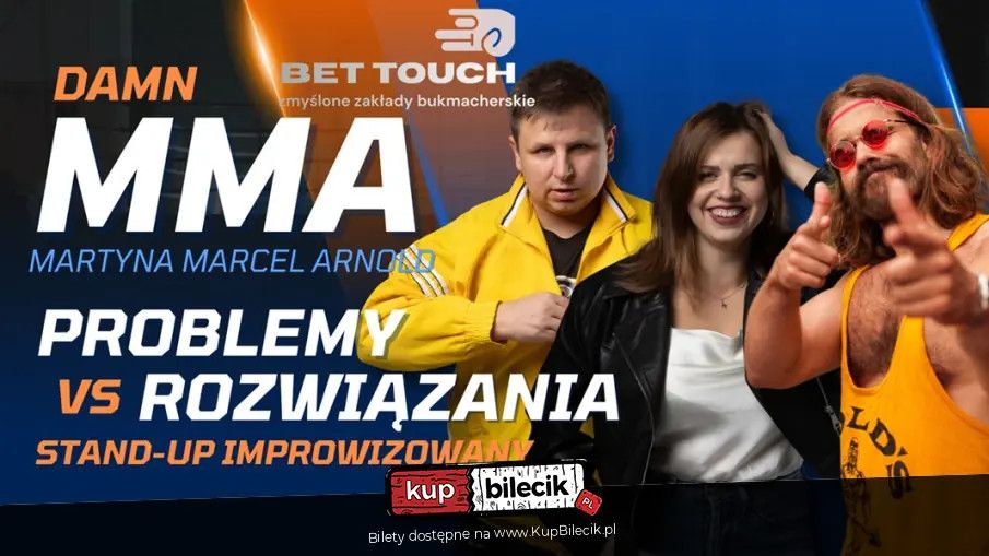 | Stand-up: DAMN MMA MARTYNA MARCEL ARNOLDdodano 2026-03-24 19:13:44 Wieczór improwizowanych potyczek intelektualnych, podczas którego zawodnicy zmierzą się z tematami wagi ciężkiej. Na scenie wystąpią: Martyna Podwysocka, Marcel Bieńkowski i Arnold Cytrowski. Format? Improwizowany, komediowy panel dyskusyjny - weźmiemy na tapet różne ciekawe tematy i spróbujemy znaleźć dla nich rozwiązania, zderzając je po drodze z opinią publiczności. Social Komedia artyści: Różni artyściZapraszamy na wieczór stand-up! Będziemy mówić żarty i będzie bardzo śmiesznie, to tyle jeśli chodzi o przebieg wydarzenia. Bilety do nabycia na: KupBilecik.pl |
