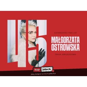 bilety: Małgorzata Ostrowska - 45 lat: koncert jubileuszowy. Małgorzata Ostrowska artyści: Małgorzata OstrowskaMałgorzata Ostrowska jest niekwestionowaną ikoną polskiego rocka lat 80"tych. Popularność zdobyła jako wokalistka zespołu Lombard, z którym zagrała ponad tysiąc trzysta koncertów w całej Polsce i poza granicami kraju (w USA, RFN, ZSRR, Holandii, Czechosłowacji, Szwecji, dawnej Jugosławii, Iraku, na Węgrzech i we Włoszech), nagrała dziesięć płyt, z których trzy uzyskały status "Złotej Płyty", a także wylansowała kilkanaście przebojów (takich jak m.in. "Szklana pogoda", "Droga Pani Telewizji", "Taniec pingwina na szkle", "Mister of America", "Znowu radio", "Mam dość" czy "Meluzyna"). Koncerty jazzowe na Festiwalu "Jazz Jamboree", rola Królowej Aby w filmie "Podróże Pana Kleksa", rola Marii Magdaleny w polskiej wersji rock-opery "Jesus Christ Superstar" z 1987 roku, a później tytułowa rola w musicalu "Pocałunek Kobiety-Pająka" to kolejne etapy kariery, które uczyniły z niej niezwykle intrygującą, nieszablonową artystkę estradową. Bilety do nabycia na: KupBilecik.pl |