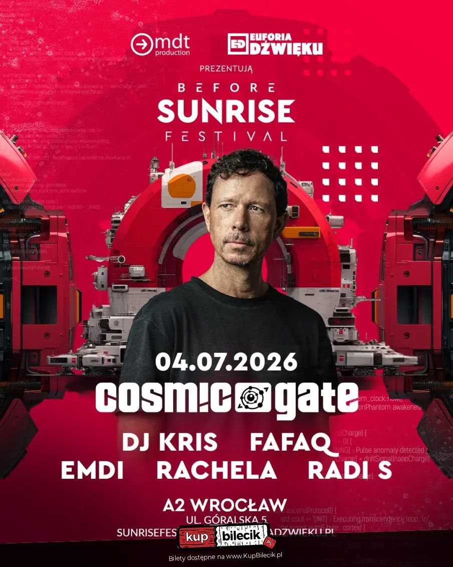 Podczas tego wydarzenia, za deckami staną postacie doskonale Wam znane. Gwiazdą wieczoru będzie Cosmic Gate w nowej odsłonie i z nowym repertuarem. Po 27 latach stery przejął wyłącznie Nic, otwierając kolejny rozdział historii. Jego solowe występy to gwarancja potężnej energii i pięknej nostalgii w idealnych proporcjach..